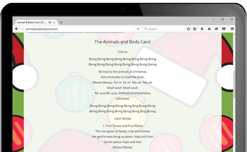 Animal & Birds Carol is a charity project that we developed a marketing-ready website and carried out a social media campaign for to insure maximum awareness for the cause. We also mass distributed the musical score in PDF file format to schools around the United Kingdom.