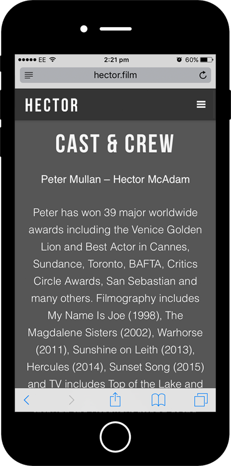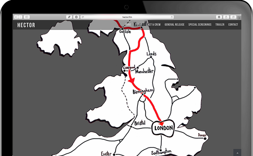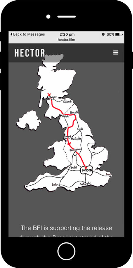 One of our favourite movies of 2015/16, we were over the moon to find out that we have been invited to the screening. Our goal was to achieve a modern website design to provide the audience with more insightful information of Hector the film, more then any other source online. With up-to-date cinema listing and mobile compatibility is key.