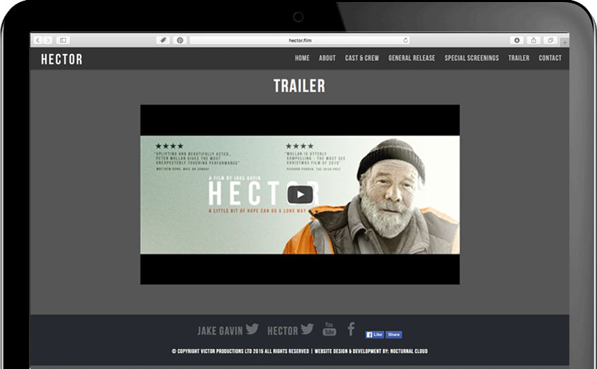A movie themed mobile friendly website with the search engine optimised for the new domain extensions hector.film which is considered to be more technically challenging for marketing purposes as it was such a new extension.
